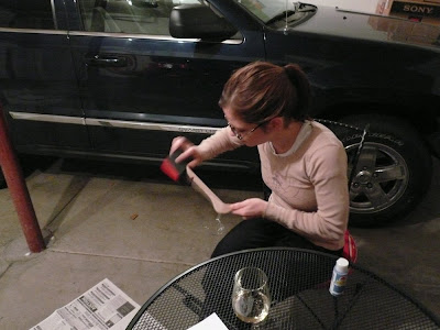 Sunday, November 16, 2008 at 7:40PM This is how we roll on a Saturday night... by painting and cutting paper and writing out menu labels...